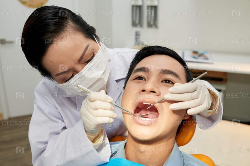Стоматолог осматривает здоровье молодого этнического мужчины