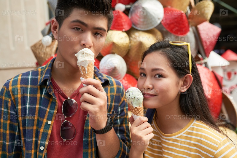 Пара ест мороженое