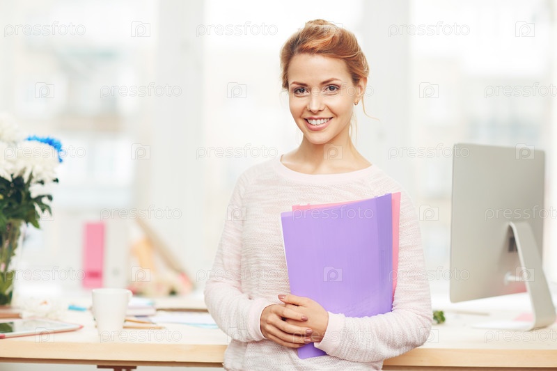 Привлекательная деловая женщина с папками в руках