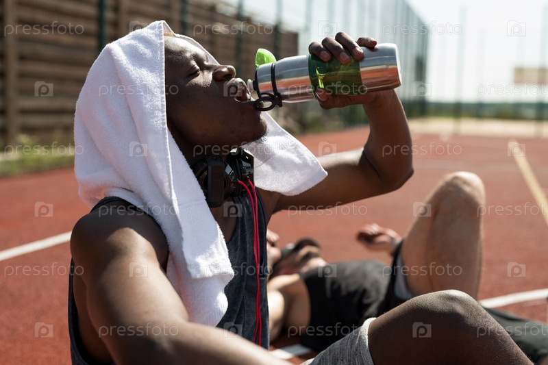 Измученные баскетбольные игроки отдыхают на корте