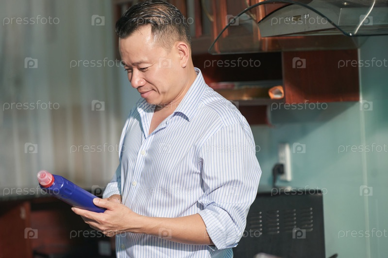 Человек, читающий инструкции на уборщике