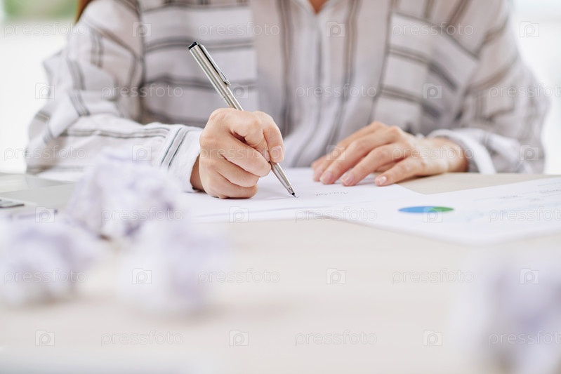 Рабочая женщина пишет на бумаге