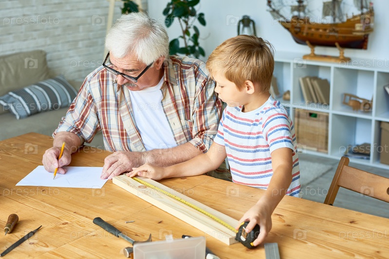 Дедушка учит маленького мальчика