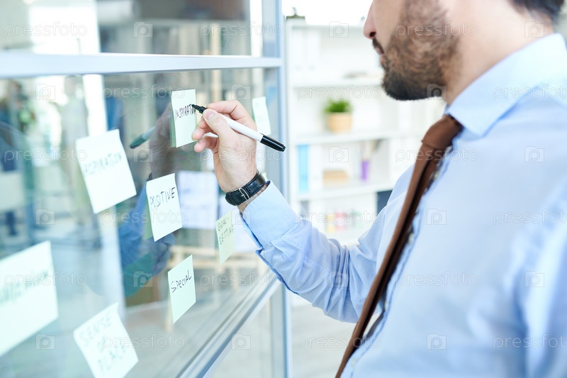 Человек с урожаем устраивает наклеенные записки