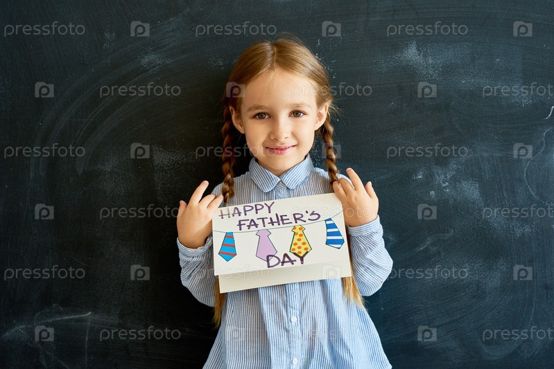 Милая девочка, держащая поздравительную карточку на День отца