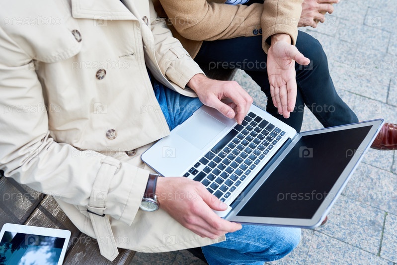 Непризнанные люди, использующие ноутбук в парке