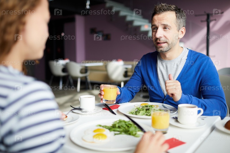 Красивый предприниматель завтракает с инвестором