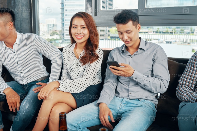 Очаровательная женщина в компании мужчин