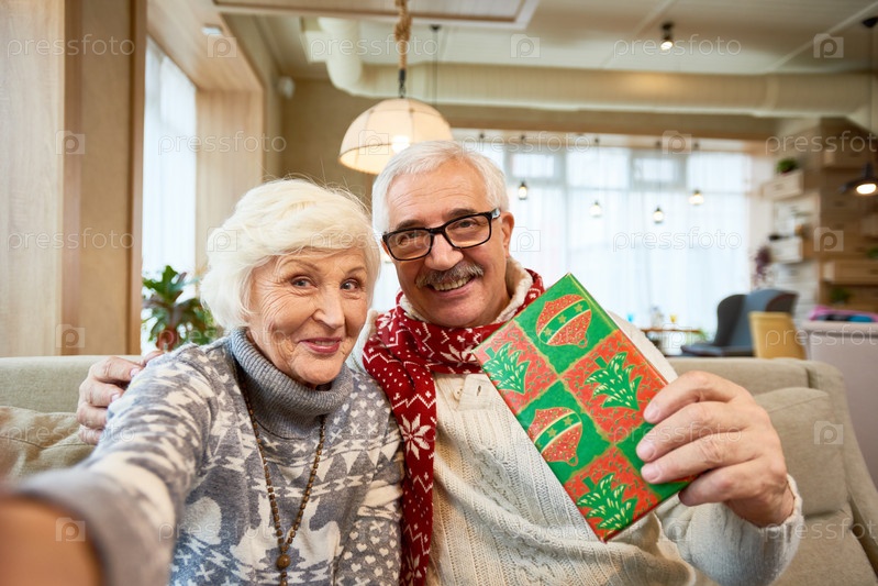 Старшая пара делает селфи на Рождество