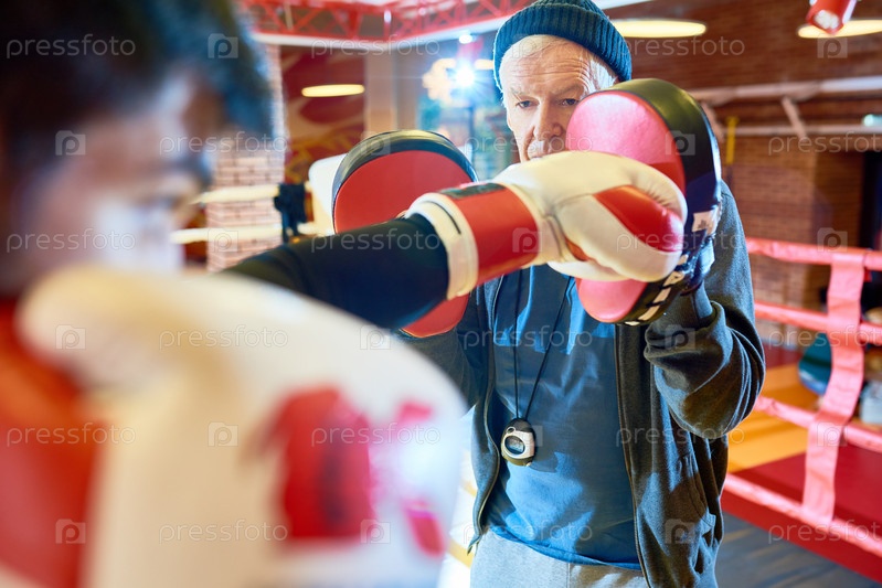 Старший тренер в боксерском ринге