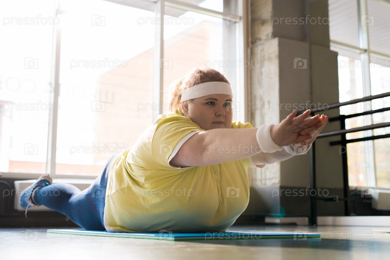 Ожирелая молодая женщина тренируется