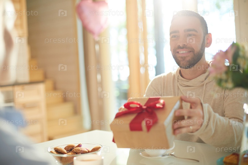Заботливый мужчина с подарком для любимой