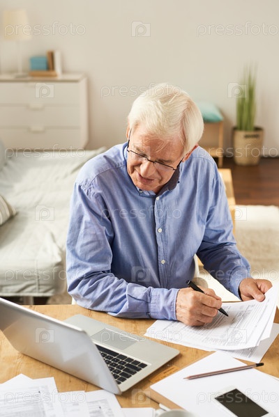 Мужчина, заполняющий заявку на дому Senior