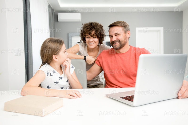 Семья, использующая ноутбук
