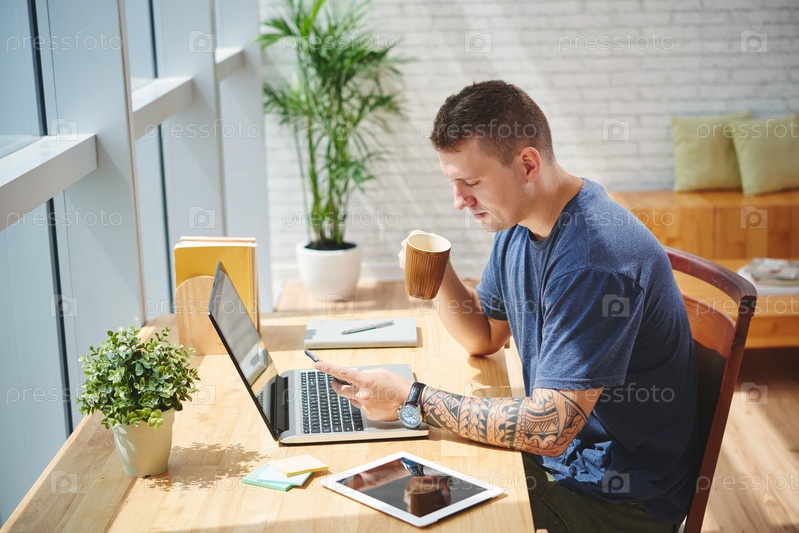 Молодой человек проверяет смартфон