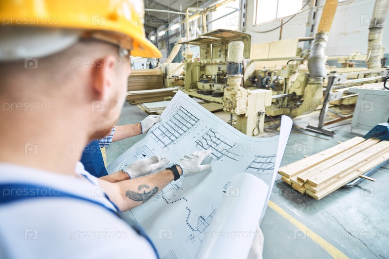 Два рабочего смотрят на строительные документы