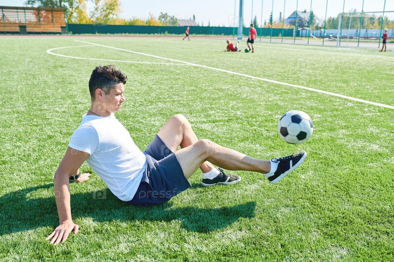 Молодой человек играет в футбол