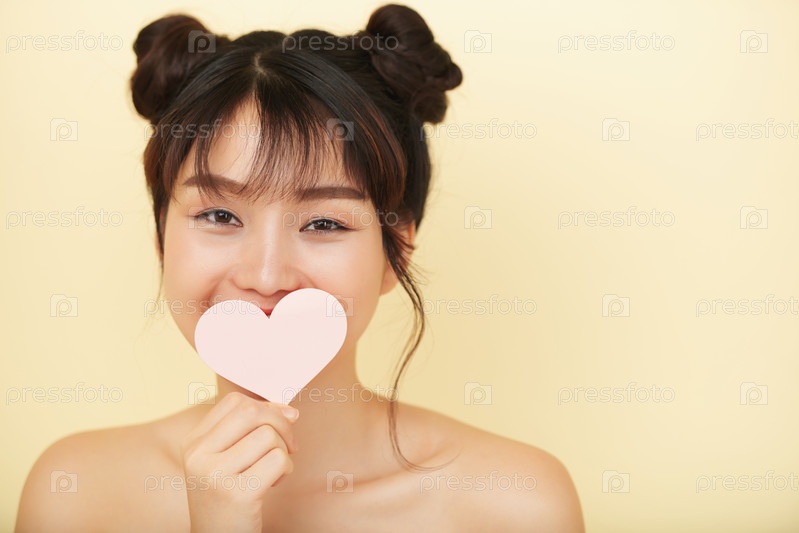 Чудесная счастливая азиатская женщина с бумажным ухом