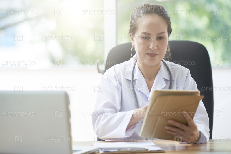 Женщина-врач с цифровым планшетом