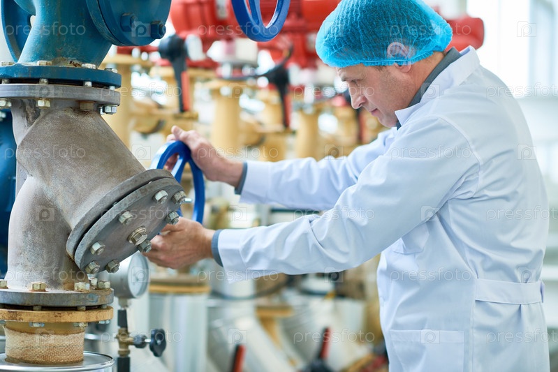 Зрелый работник проверяет трубы на современной фабрике