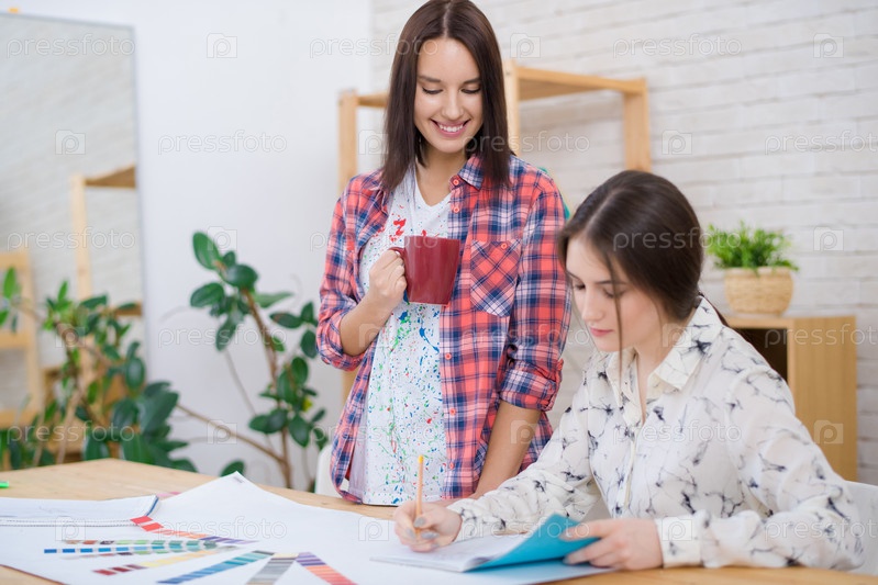 Коллеги-женщины рисуют новый дизайн