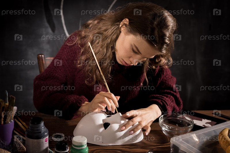 Концентрированная женщина, делающая маску