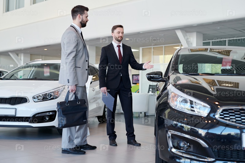 Продавец автомобилей помогает клиенту