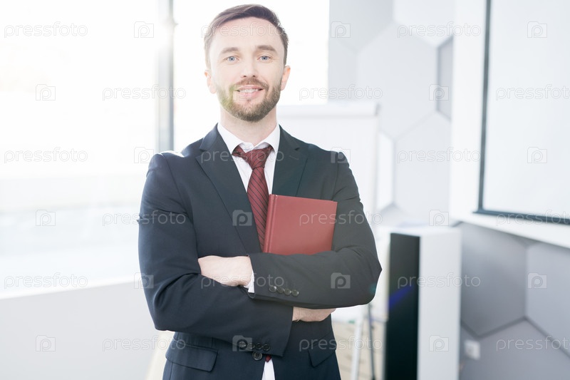 Успешный бизнесмен позирует в офисе