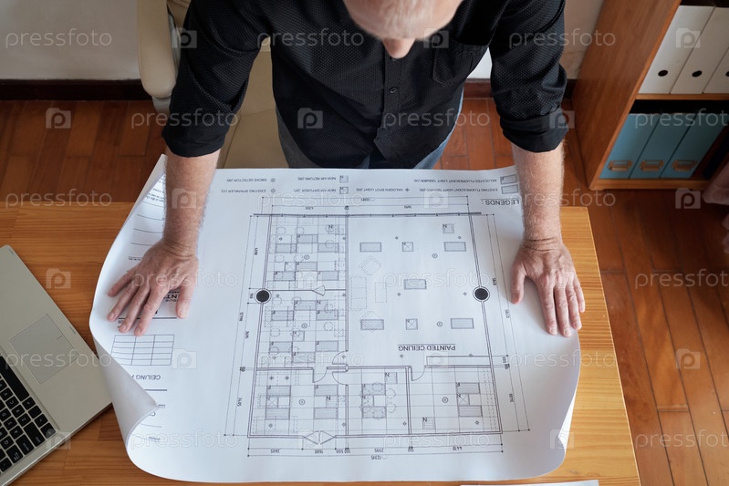 Инженер, изучающий строительный план