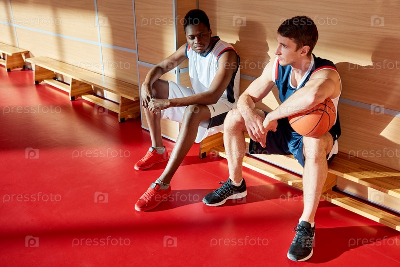 Спортсмены на скамейке в спортзале