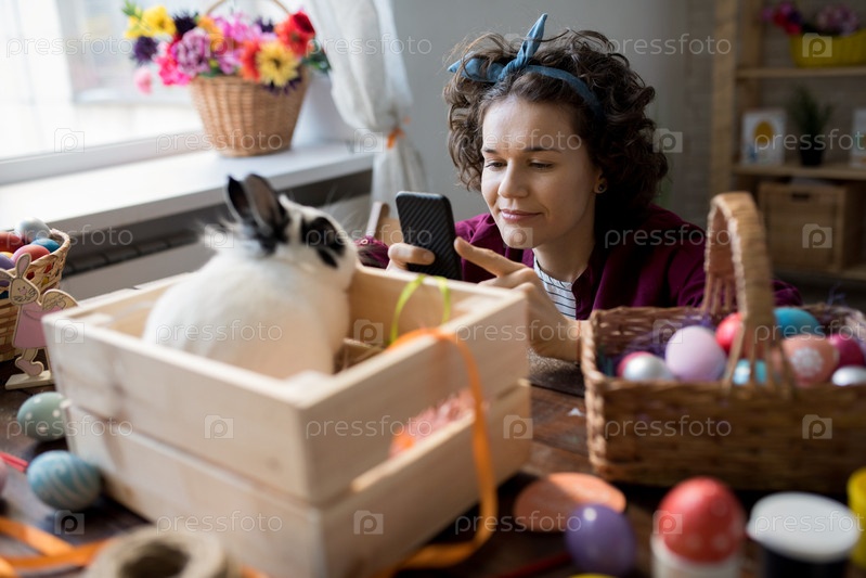 Женщина фотографирует пасхальные украшения