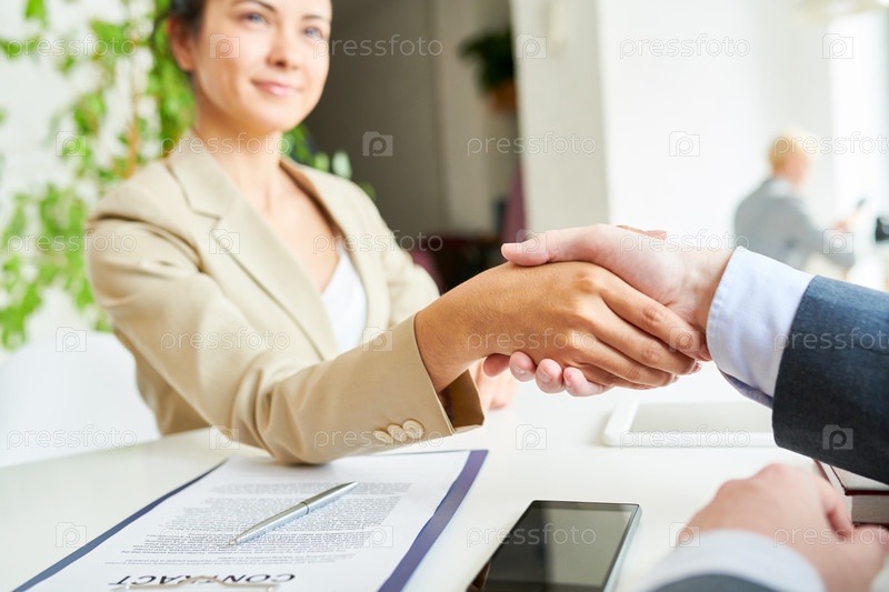 Элегантная деловая женщина, пожавшая руку своему партнеру