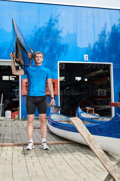 Спортсмен со спортивной лодкой