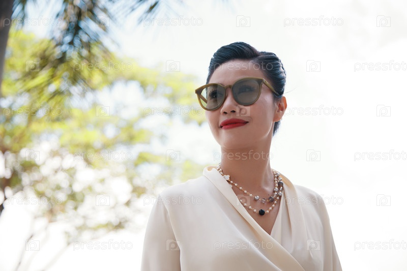 Красивая женщина в блузке и солнцезащитных очках