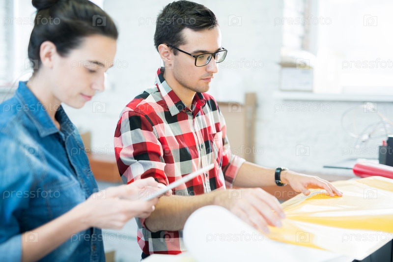 Сотрудники типографии, работающие с красочной бумагой