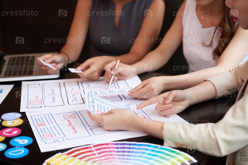 Дизайнеры рисуют план интерфейса