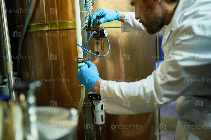 Настройка давления в цилиндрическом резервуаре для созревания пива