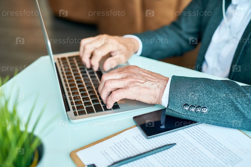 Бизнесмен, печатающий Close Up Senior