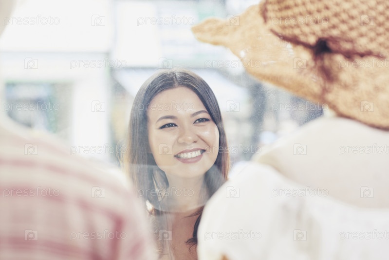 Молодая женщина смотрит в витрину