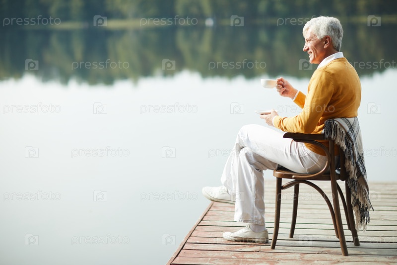 Расслабленный старший мужчина на пирсе