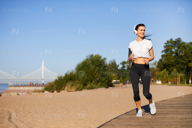 Красивая леди, бегущая на пляже