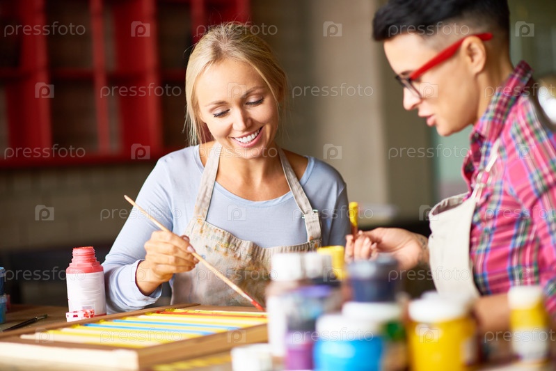 Молодые женщины, работающие в художественной студии