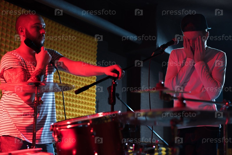 Усталые музыканты на репетиции группы