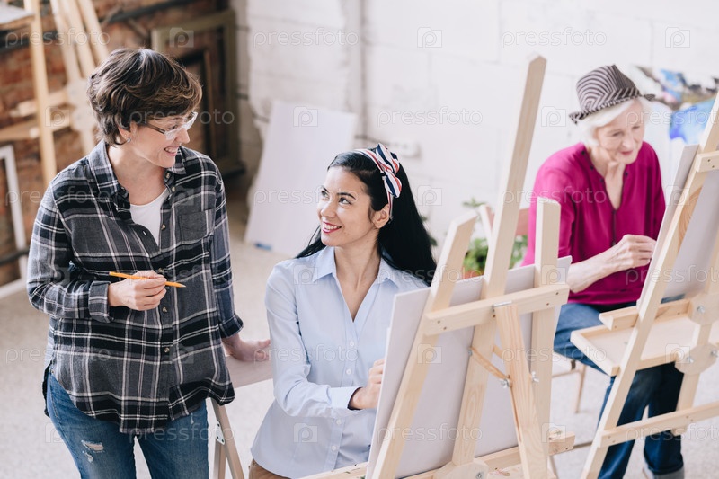 Учительница искусств улыбается ученику