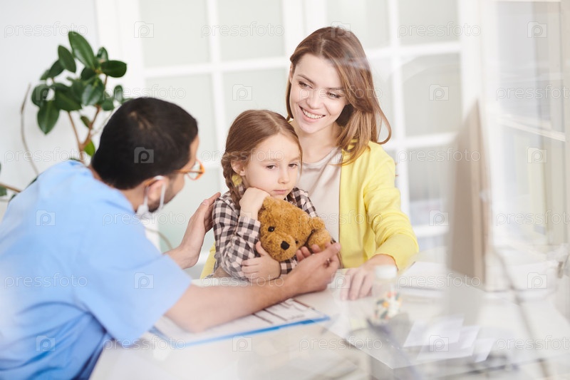 Испуганная девочка посещает доктора