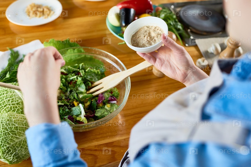 Добавление приправы в салат