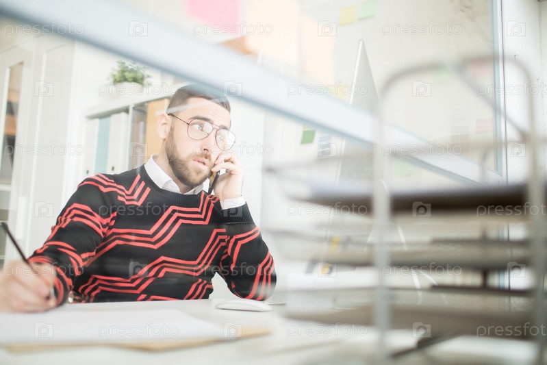 Уверенный в себе мужчина-менеджер разговаривает по мобильному телефону