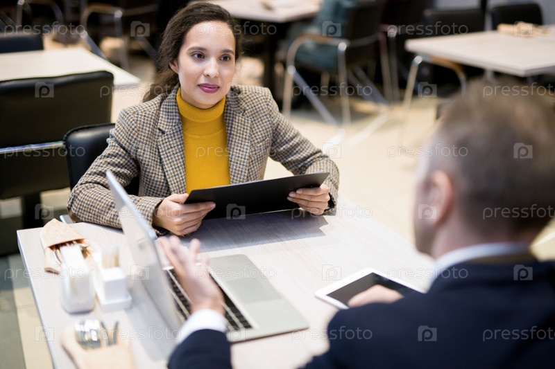 Бизнес-партнеры обсуждают проект за обедом