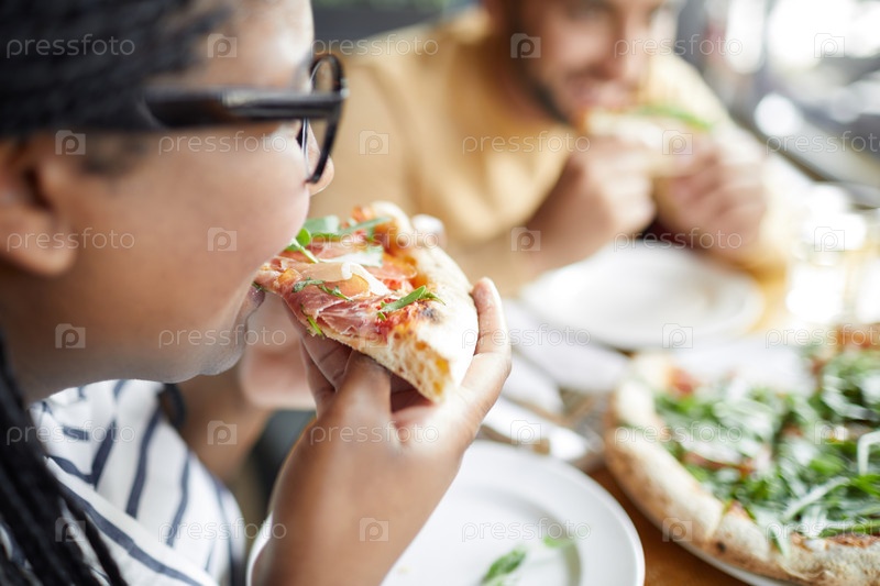 Девушка ест пиццу