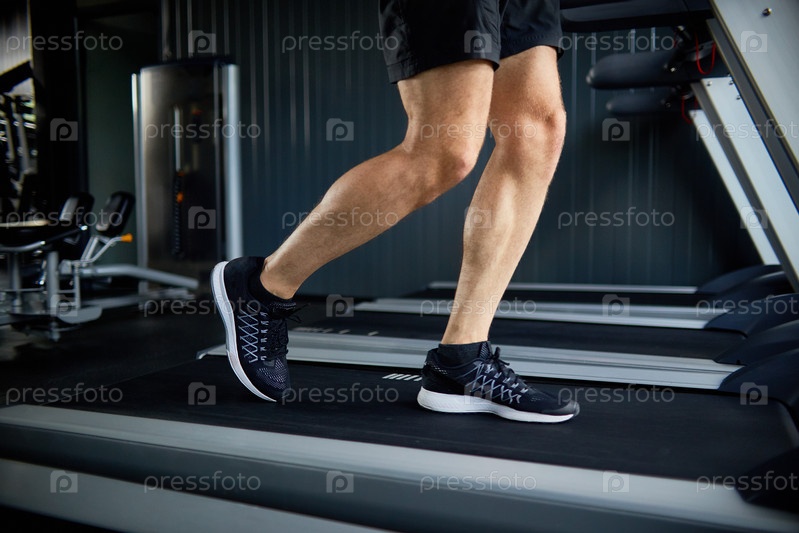 Мышечные ноги, бегущие на беговой дорожке